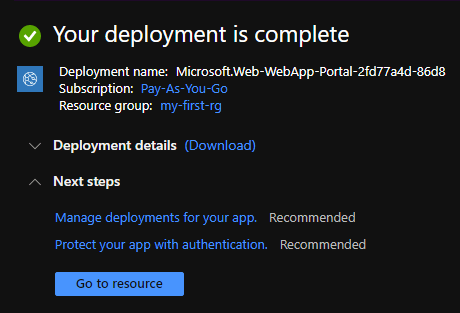 Once the deployment is completed, go to the resource.