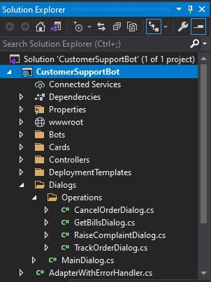 MainDialog Is the root dialog for all your sub dialogs. You can call any number of sub dialogs from here. Create a new folder under Dialogs with the name Operations.