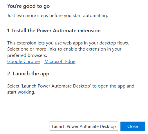 When you install the Power Automate Desktop, the following message is shown after the login. This message does not allow us to create the flows.